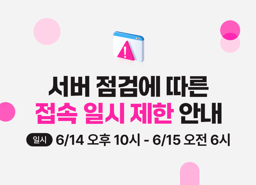 2024년 6월 14일 밤 10시 15일 오전 6시까지 사이트가 일시 접속 중단될 수 있는 점 참고 부탁드립니다.