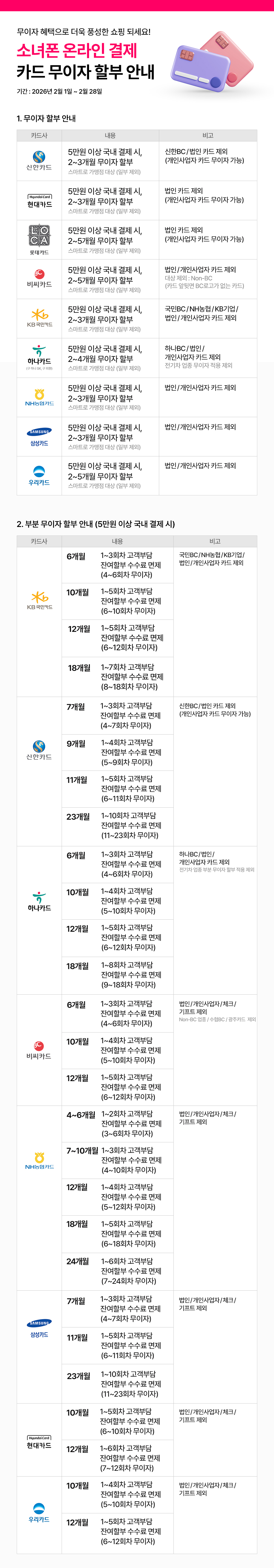 2월 소녀폰 카드사 별 무이자 할부 프로모션