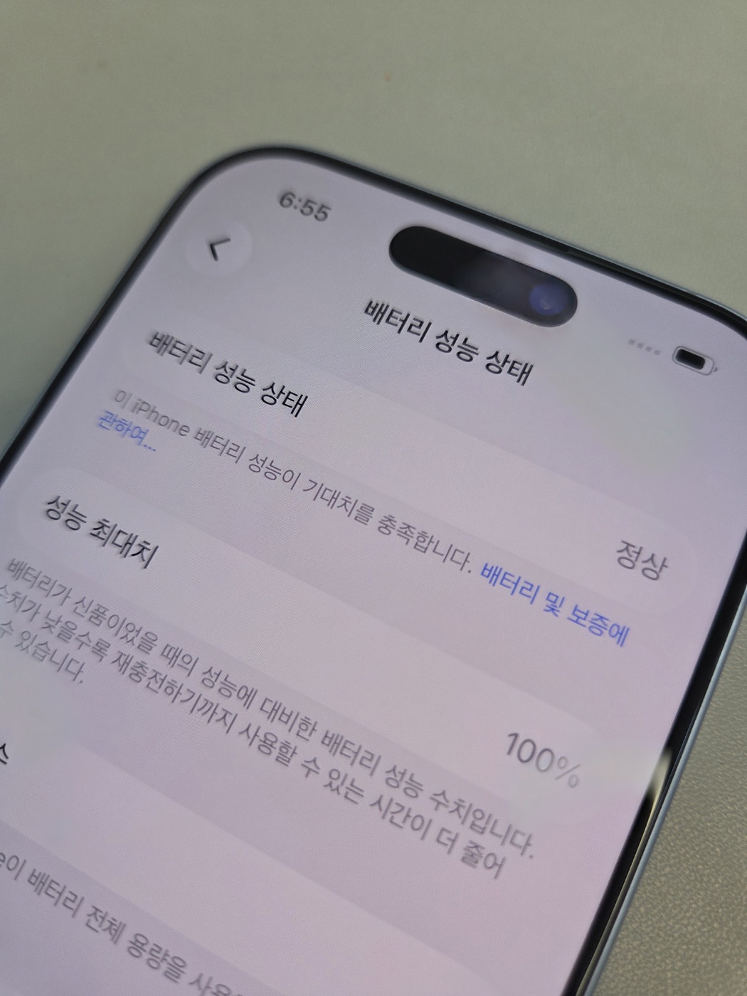 중고폰 임에도 배터리 성능도 100%라서 살짝 놀랐어요.